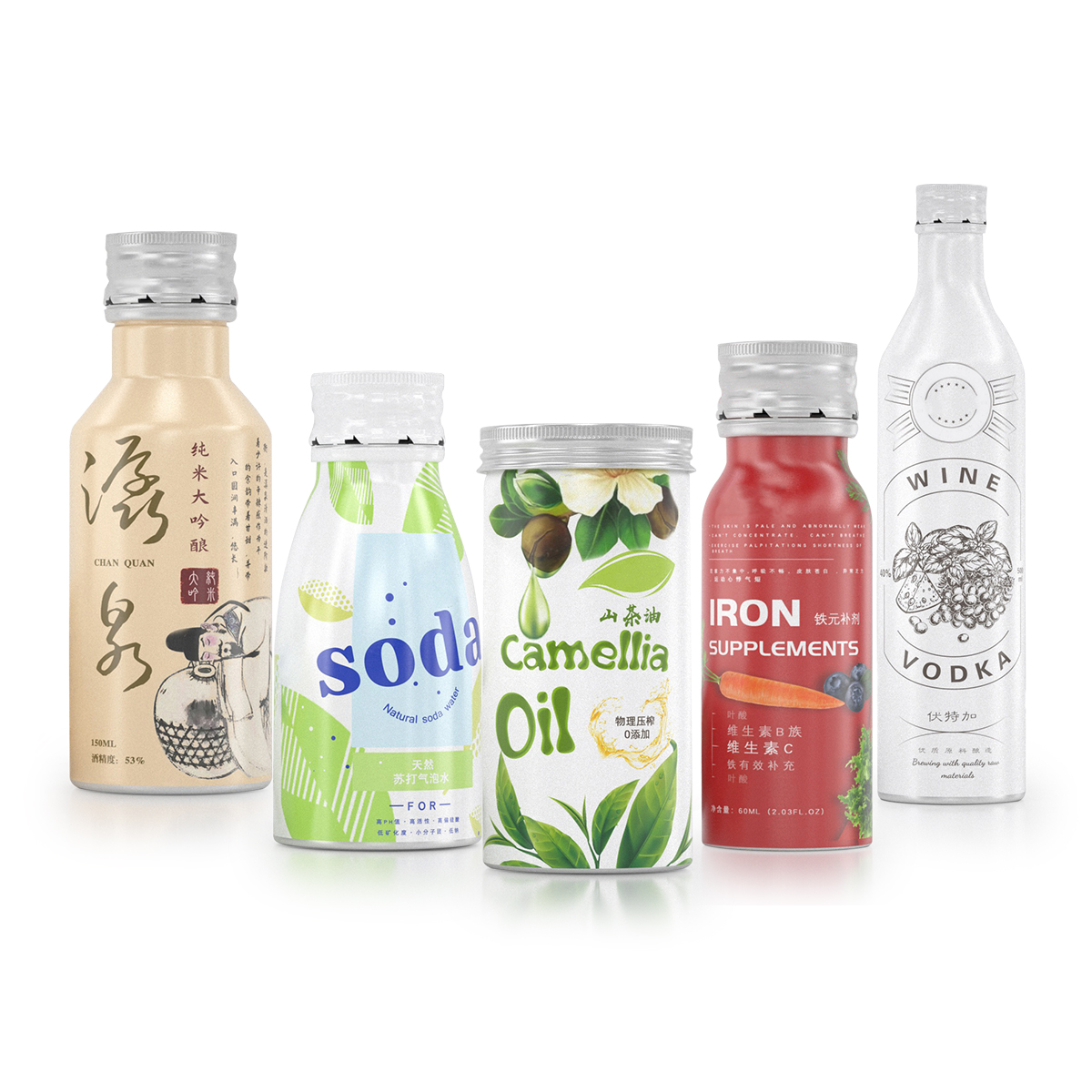 We work with a range of products such as aluminum tins, aluminum bottles, glass jars, glass bottles, plastic jars, plastic bottles, squeeze tubes, shrink bands, and even cardboard tube packaging. It is possible to choose one of our in-stock products for customization or to create an entirely new product from scratch.